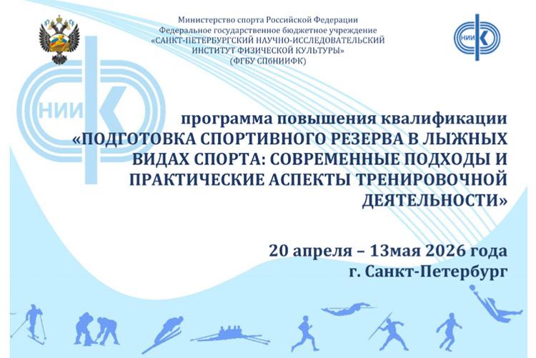 20 апреля 2026 года на базе ФГБУ СПбНИИФК стартовала программа повышения квалификации «Подготовка спортивного резерва в лыжных видах спорта: современные подходы и практические аспекты тренировочной деятельности», объем программы 108 часов. Программа повышения квалификации реализуется в соответствии с государственной программой Российской Федерации «Развитие физической культуры и спорта» Министерства спорта Российской Федерации.