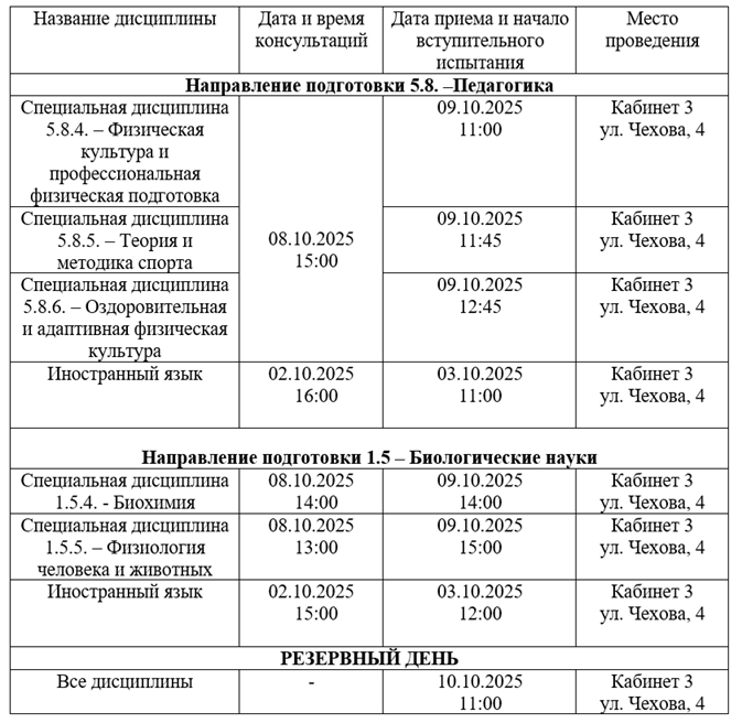 Прием на обучение по образовательным программам подготовки научных и научно-педагогических кадров в аспирантуре ФГБУ СПбНИИФК