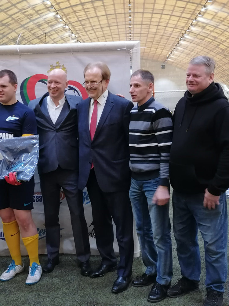 И.о. директора ФГБУ СПбНИИФК к.э.н., доцент П.А. Булочников, главный научный сотрудник, заслуженный деятель науки РФ, д.э.н., профессор А.Д. Евменов и зав. сектором к.б.н. Т.В. Красноперова приняли участие в мероприятии в качестве почетных гостей на церемонии закрытия и вместе с Президентом Федерации футбола лиц с заболеванием ЦП Санкт-Петербурга Г.Б. Герасимовым от души поздравили победителей, призеров и участников соревнований.